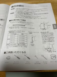 準備するものから、取り付け方、試運転、施工完了チェックシートまで書かれています。