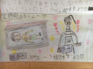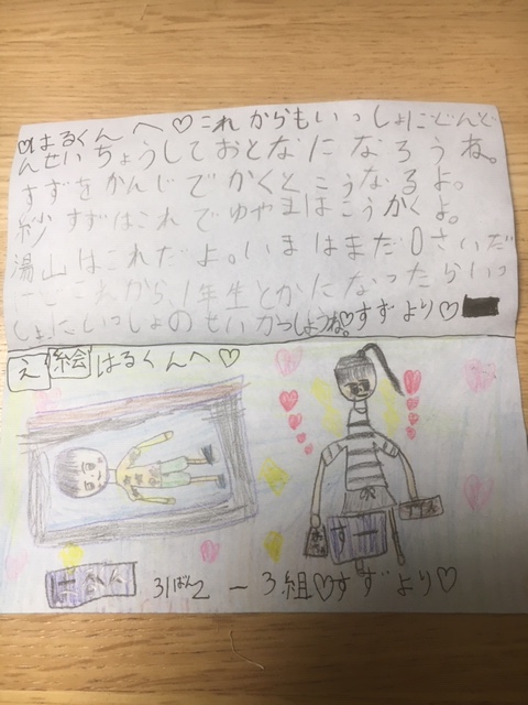 7歳の紗(すず)ちゃんが0歳の陽(はる)君へ手紙を書いてくれました。