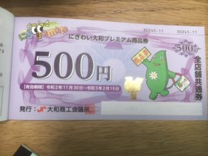 「にぎわい大和プレミアム商品券」のことを娘から聞き、家族で応募しました。