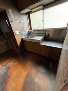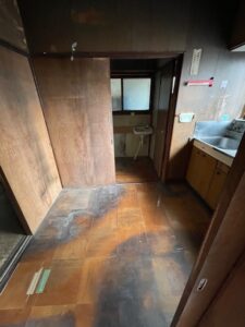 1階キッチンです。床が傷んでいます。