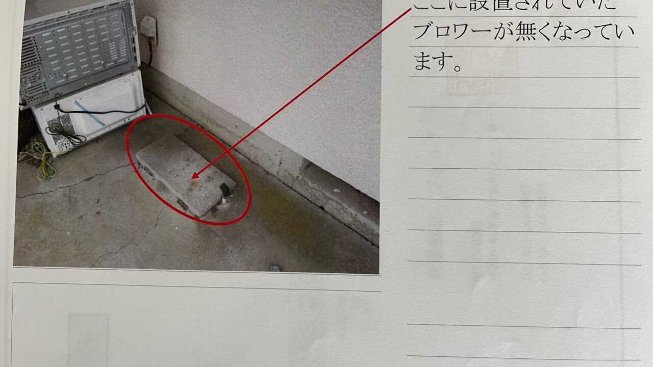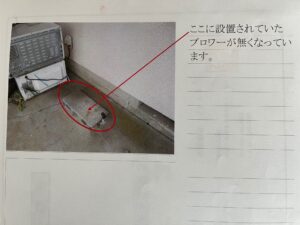 「今日、物件を巡回していたら、置いてあるはずの浄化槽ブロワーがありません。紛失していました!!」